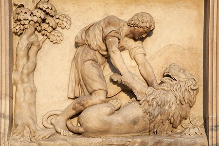 A força, que Sansão descobriu ao encontrar um leão e matá-lo com as próprias mãos, vinha de seu cabelo.